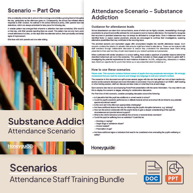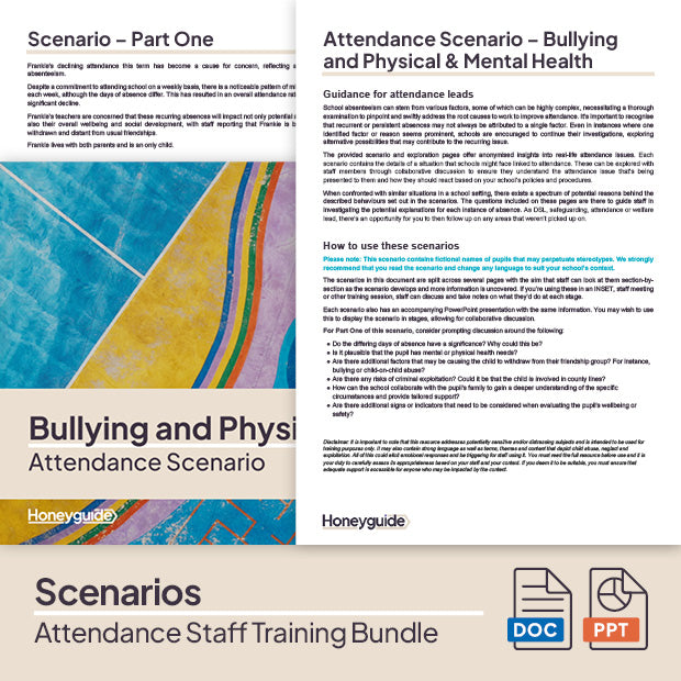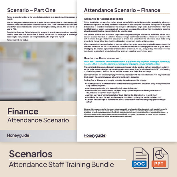 Wanting to help your staff to understand the role they play in reducing pupil absence by sharing details from the most up-to-date version on Working Together to Improve Attendance? This training bundle, which is perfect for INSETs, staff meetings and twilights, contains engaging and collaborative training materials plus real-life attendance scenarios to meet your attendance CPD needs.