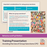 A 30-slide PowerPoint designed to last between 30 minutes to 1 hour, this time-saving and ready-to-roll CPD session on avoiding the use of group sanctions is a perfect way to train staff in the different ways they can manage challenging behaviour without collectively punishing or sanctioning pupils who weren't part of the disruptive behaviour.