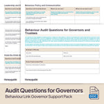 1. Behaviour Audit Questions for Governors and Trustees - This document is designed to allow collaboration between the behaviour governor and the key staff members with responsibility for behaviour in school, such as the headteacher, DHT, behaviour lead and/or pastoral lead. Containing 11 pages of questions, it helps governors and school leaders to evaluate their setting's current position, which allows further opportunities for growth to be identified as well as enabling the behaviour link governor or trustee to gain a deeper understanding about the school's current position. The audit could also be used by a school leader and then shared with the behaviour link governor afterwards; a helpful section on triangulating evidence is also included to support this approach. Once the audit is complete, an action plan template is provided, allowing you to document your next steps.