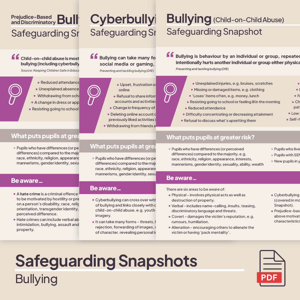 This pack will support you to upskill your staff members' knowledge about the safeguarding issue of bullying (child-on-child abuse).
