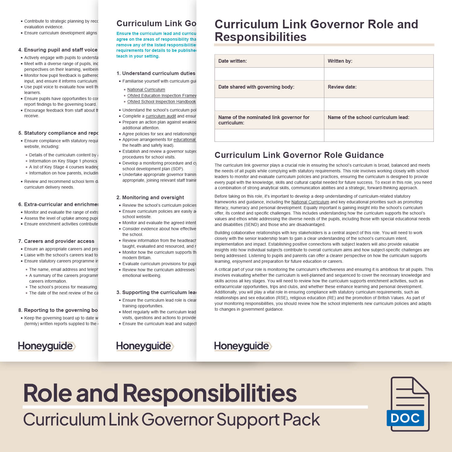 6. Curriculum Link Governor Role and Responsibilities - This document outlines the key parts of a curriculum governor's role and what areas of school governance they are responsible for. It can be used as-is or amended to reflect what your school needs from its curriculum link governor. Either way, it's a helpful document that allows a new curriculum governor to understand what they need to do.