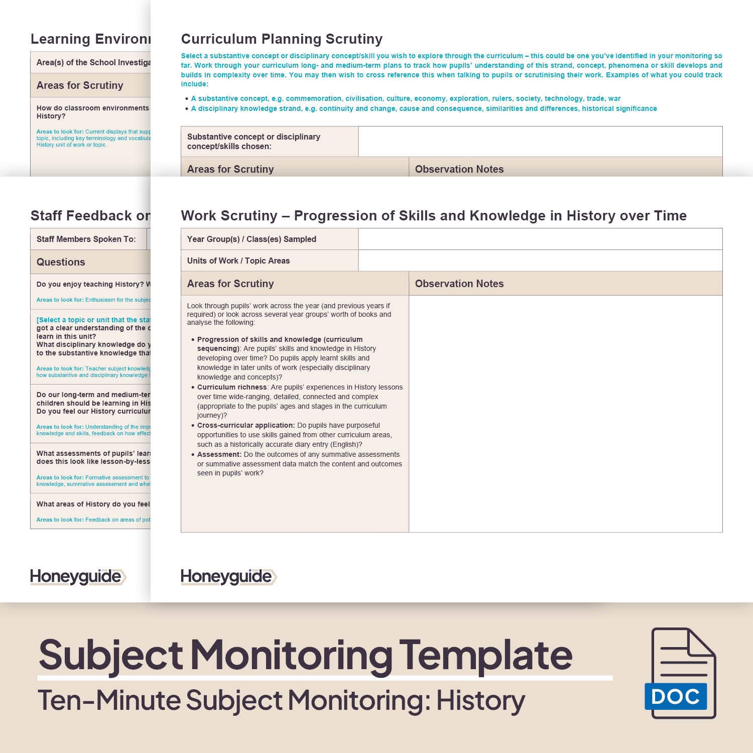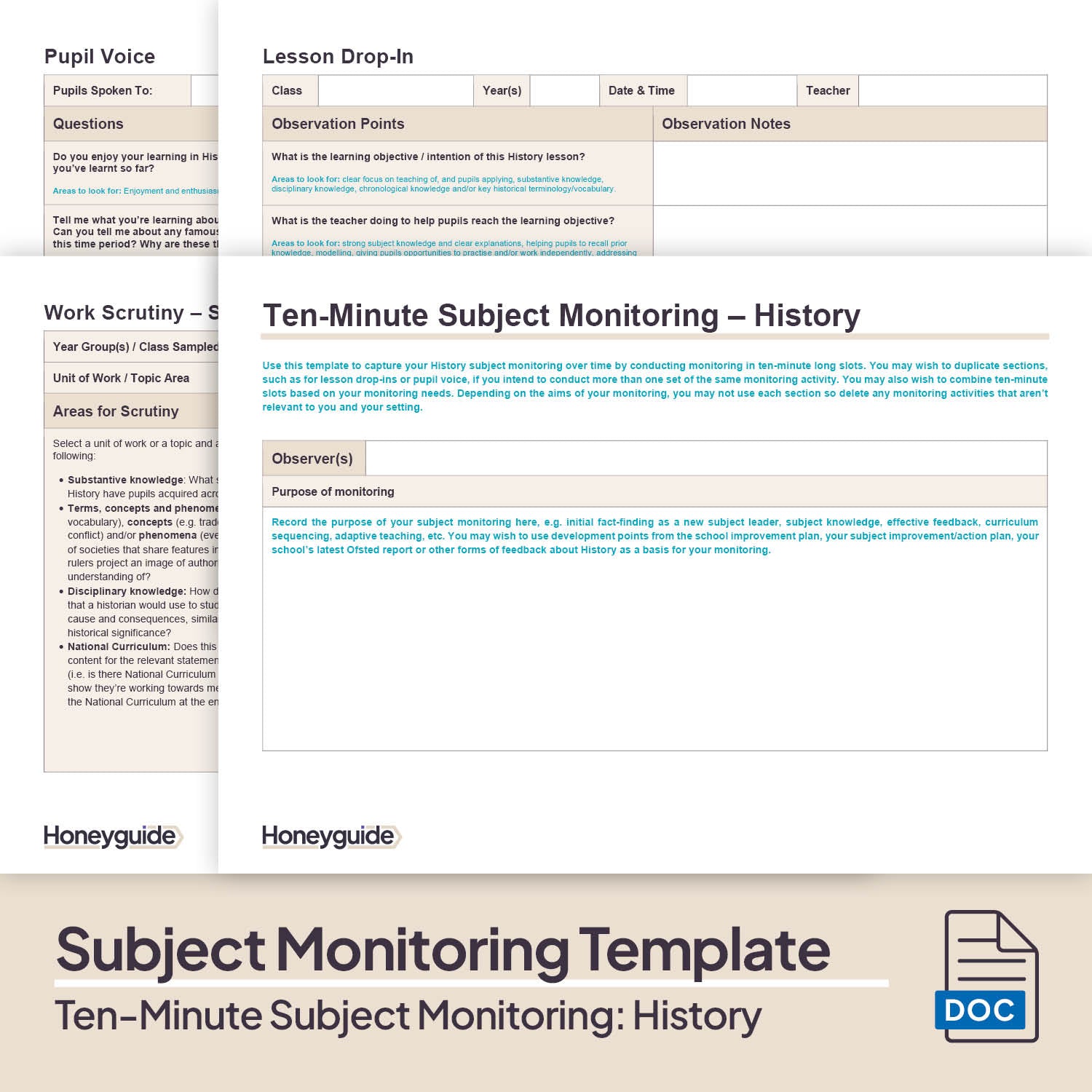 The pack explores the key aspects of monitoring in History as well as how ten-minute subject monitoring works.