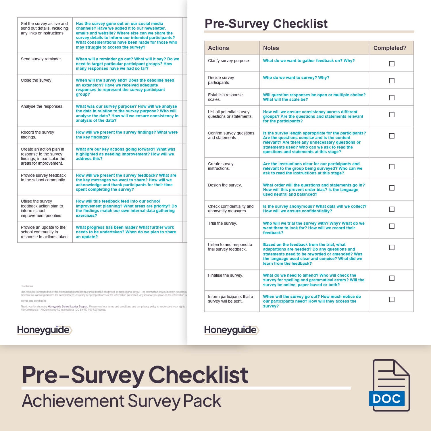 ☑️ Pre-Survey Checklist – a step-by-step checklist taking you from clarifying the purpose of your survey through to distributing it, analysing results and updating your school improvement plan, so nothing gets missed at any stage of the process.
