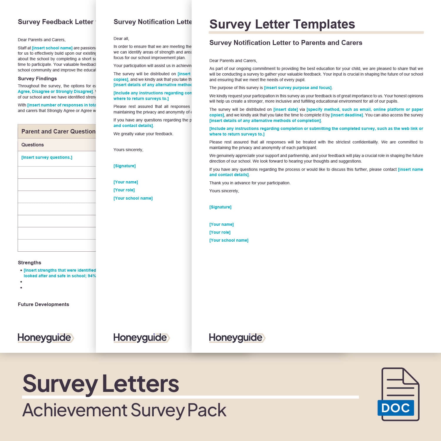 ☑️ Survey Letter Templates – four editable letter templates: a notification letter and a feedback letter for parents, and a notification letter and a feedback letter for staff, ready to adapt for your school.