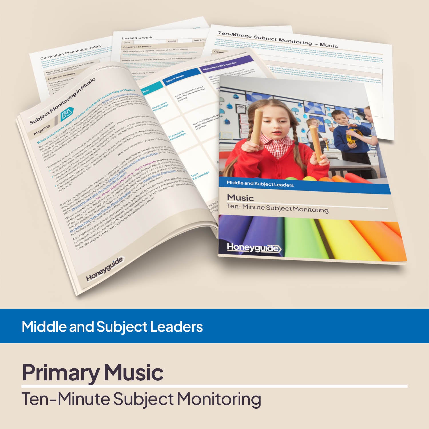 Aimed at primary Music subject leads (or those line managing a Music subject leader), this pack walks you through the entire process and is full of ideas on how to find and utilise ten-minute time slots for subject monitoring, as well as what you should be looking for in your monitoring when it comes to declarative knowledge, procedural knowledge and tacit knowledge, plus the three pillars of Music - technical, constructive and expressive skills.