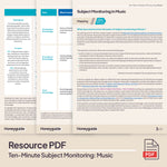 The pack explores the key aspects of monitoring in Music as well as how ten-minute subject monitoring works.