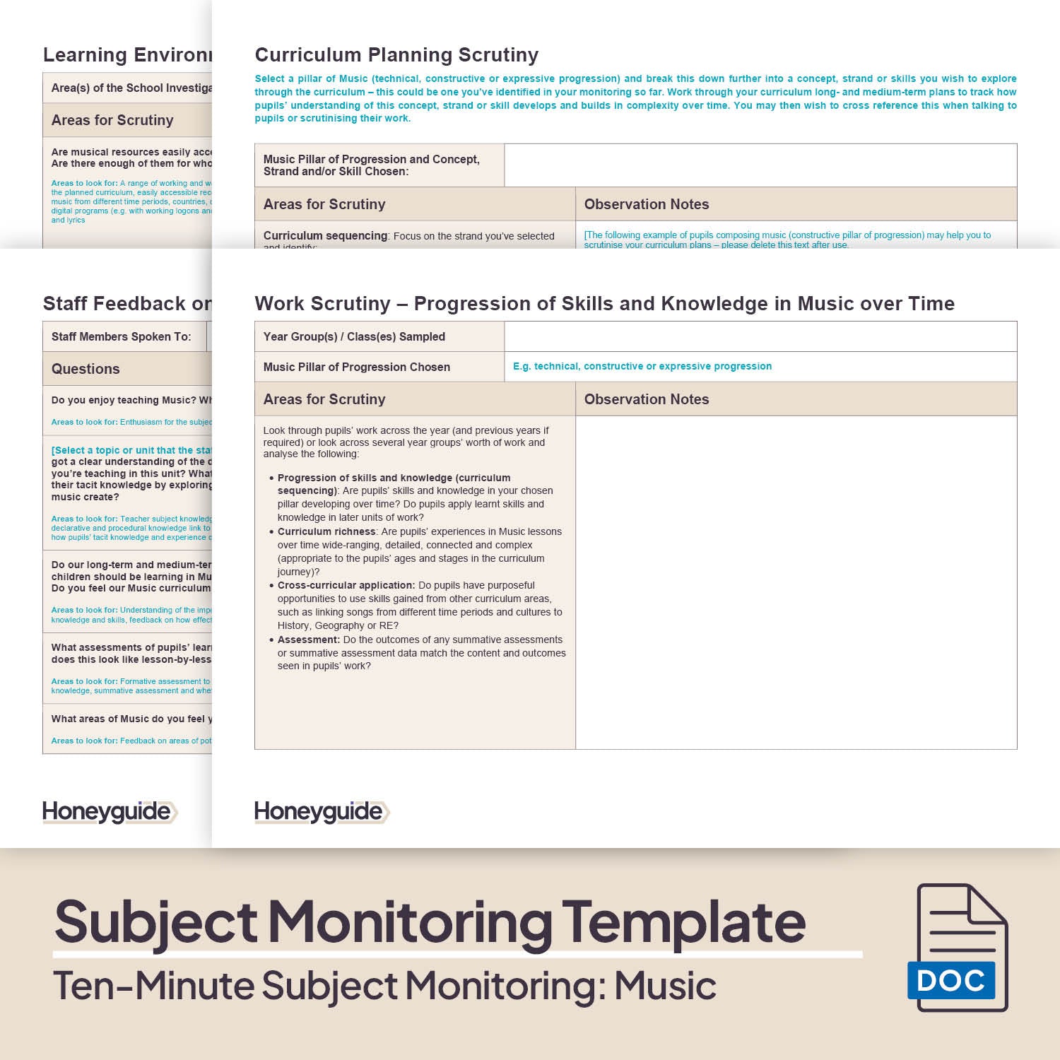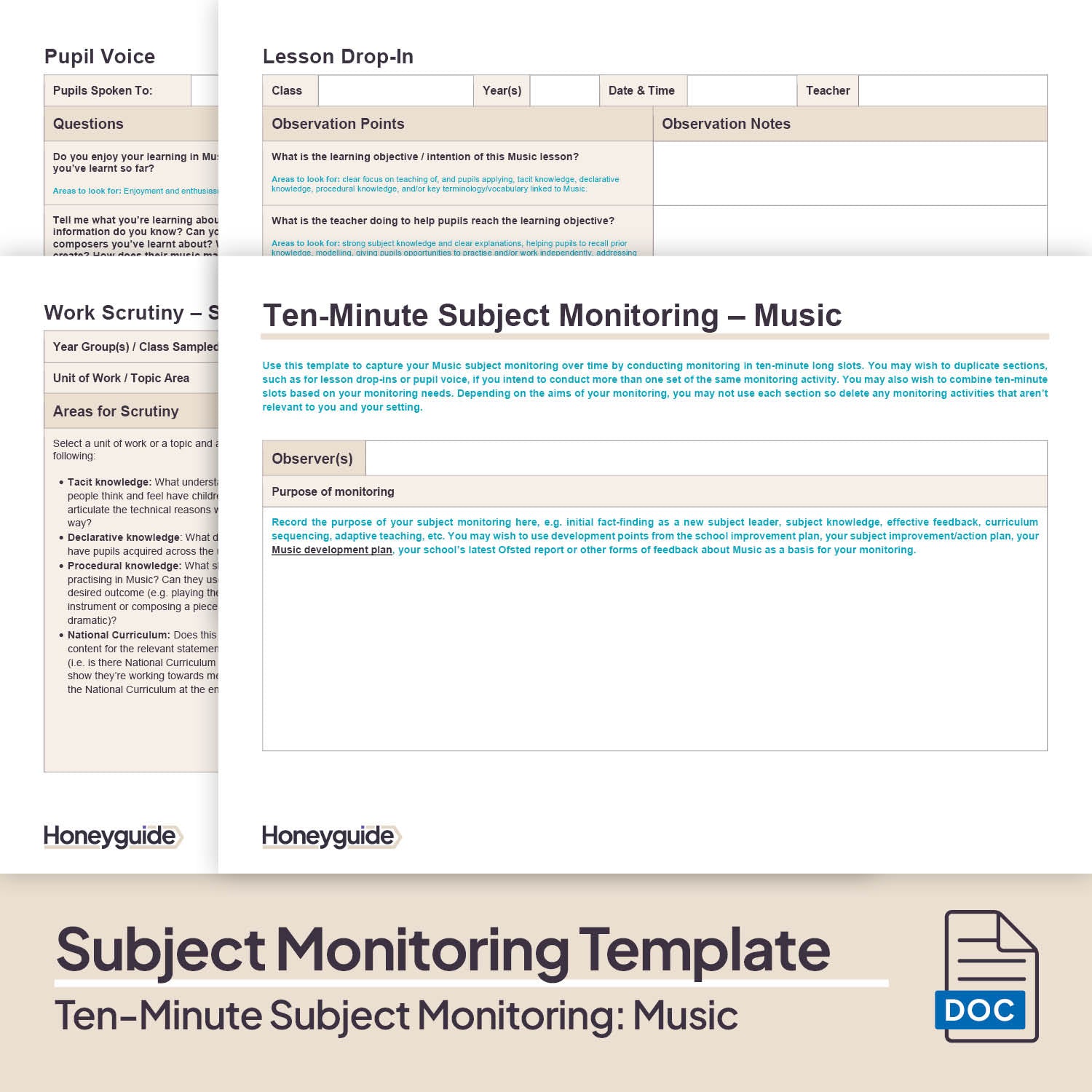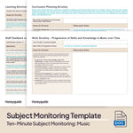 Aimed at primary school subject leaders, this pack contains a 17-page guidance PDF and a fully editable and adaptable 11-page Music subject monitoring template that talks you through how to successfully monitor teaching and learning in Music if you don't have dedicated subject leadership time or if you're not able get release from or cover for your classroom commitments.