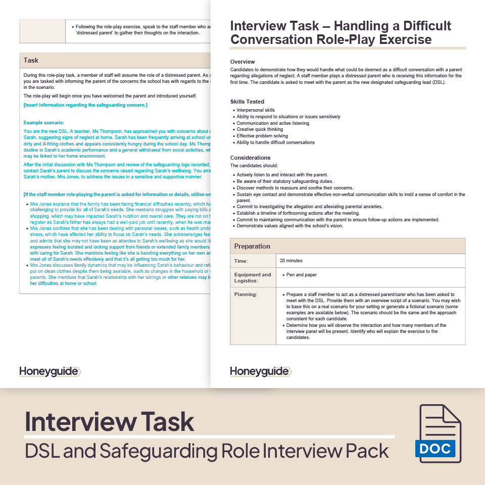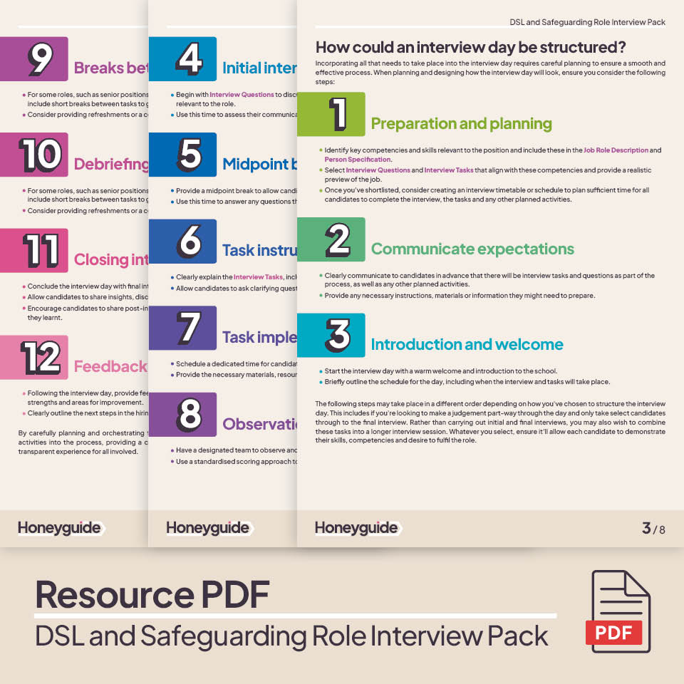 Looking to recruit a new designated safeguarding lead (DSL), deputy DSL or another staff member in a key safeguarding role? If you’re wondering what tasks will allow candidates to show their strengths or what questions to ask DSLs at interview to get the best-fit employee for your school, this DSL and Safeguarding Role Interview Pack can support you plan and organise an effective interview day.