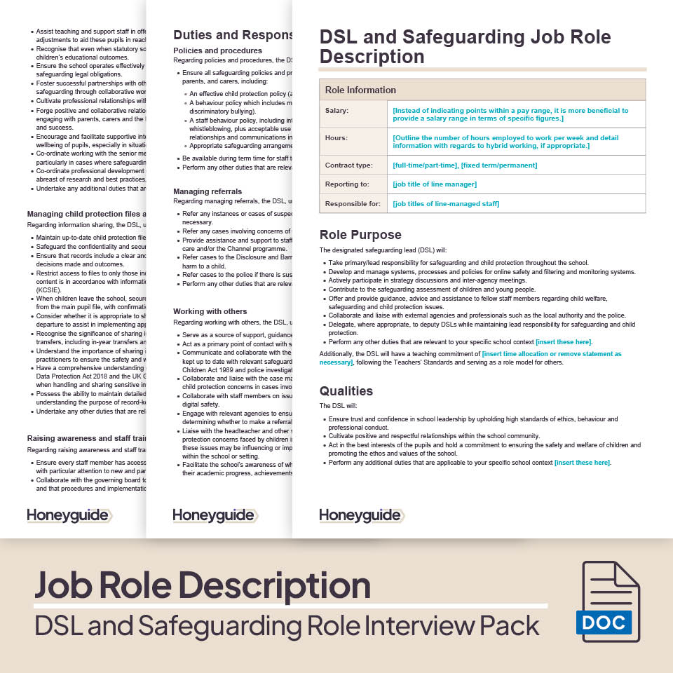 While the pack is tailored towards appointing a new DSL, it can be used to support the recruitment process for any safeguarding-focused roles, such as a deputy designated safeguarding lead, safeguarding manager, safeguarding officer or child protection lead. It can also be used when recruiting an assistant or deputy headteacher where the responsibility safeguarding and child protection will fall under their remit - in this case, you may also find our Assistant and Deputy Headteacher Interview Pack useful.