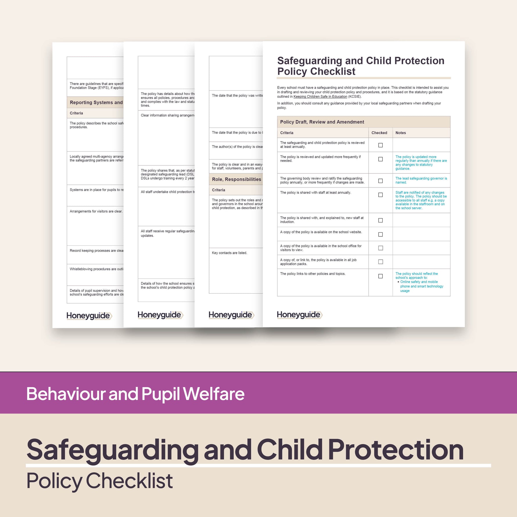 If you're needing to update your safeguarding and child protection policy but want to ensure that it covers all of the necessary criteria, this checklist will support you. Included in this download is a seven-page editable checklist that covers key areas of safeguarding policy and practice, including roles, responsibilities and training, reporting systems and procedures, safer recruitment, allegations against staff, child-on-child abuse, vulnerable pupils, online safety and filtering and monitoring.
