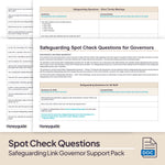 2. Safeguarding Spot Check Questions for Governors - An 11-page fully editable document for school leaders and governors to use to support questioning during safeguarding link governor visits. The document is split into three sections, covering spot check questions for all staff, questions about policy, procedure and approaches, and termly catch-up questions about the picture of safeguarding in school.