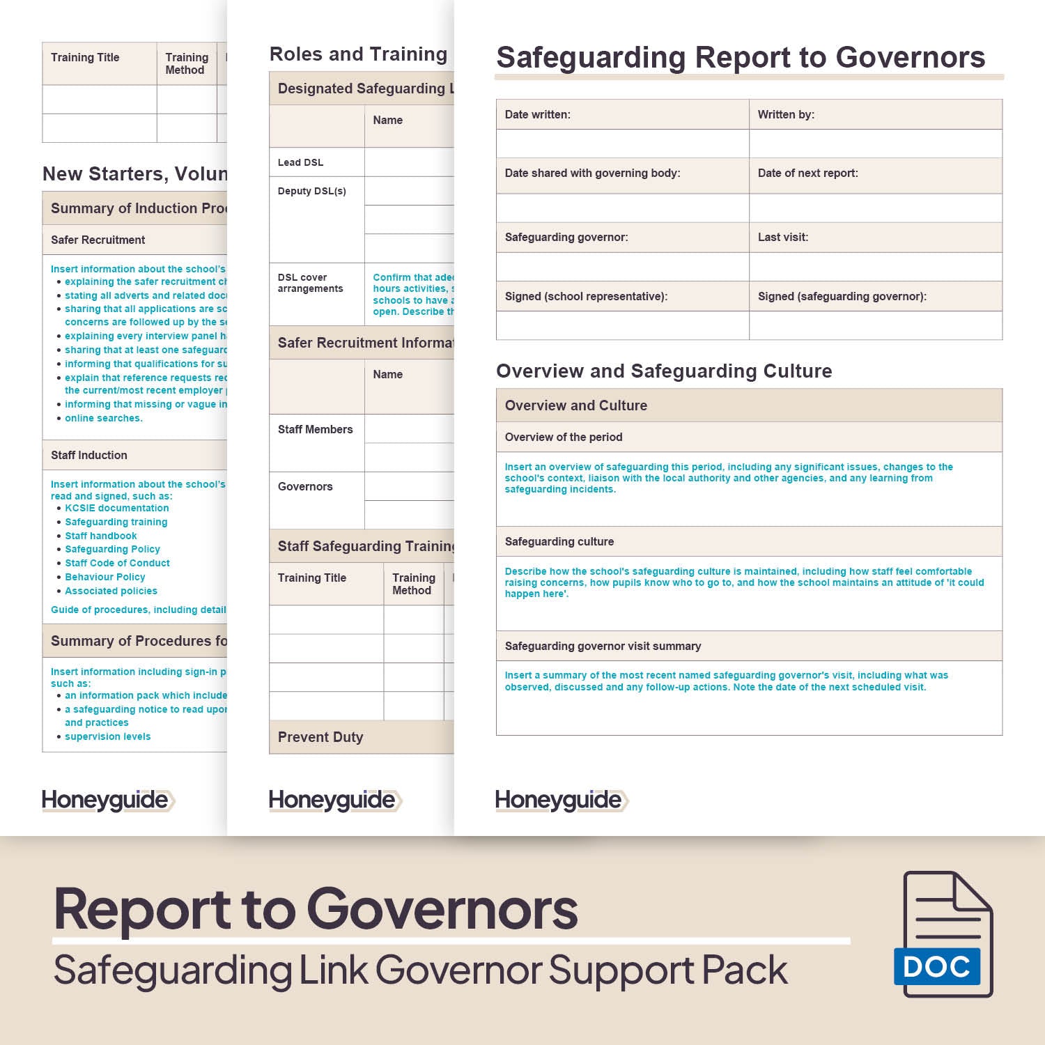 3. Safeguarding Report to Governors - This document is designed to support school leaders and the safeguarding link governor to report to their full governing board. It contains sections for both safeguarding data and commentary about the school's current position, giving all school governors insight. Please note that this template is also available to purchase separately.