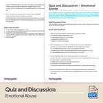 3. Quiz and Discussion - Emotional Abuse: There are five challenging multiple choice quiz questions that test your staff members' understanding of emotional abuse, plus a discussion prompt that can be used to kickstart your training session or as a follow-up question a few weeks later.
