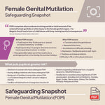 4. Safeguarding Snapshot - Female Gential Mutilation: This one-page, one-minute guide is perfect for following up the session by using as a training handout, displaying in your staff-only spaces or sending as part of a safeguarding e-bulletin.