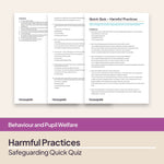 Save time and engage staff with these editable safeguarding quick quizzes. Designed for primary and secondary settings, they’re ideal for use in staff training, INSET days or CPD sessions. Each quiz includes 10 carefully written multiple-choice questions that go beyond the basics, helping you check that staff truly understand safeguarding procedures. Adapt them for your school’s internal platform, or pick out individual questions for meetings and briefings to keep safeguarding knowledge fresh all year round.