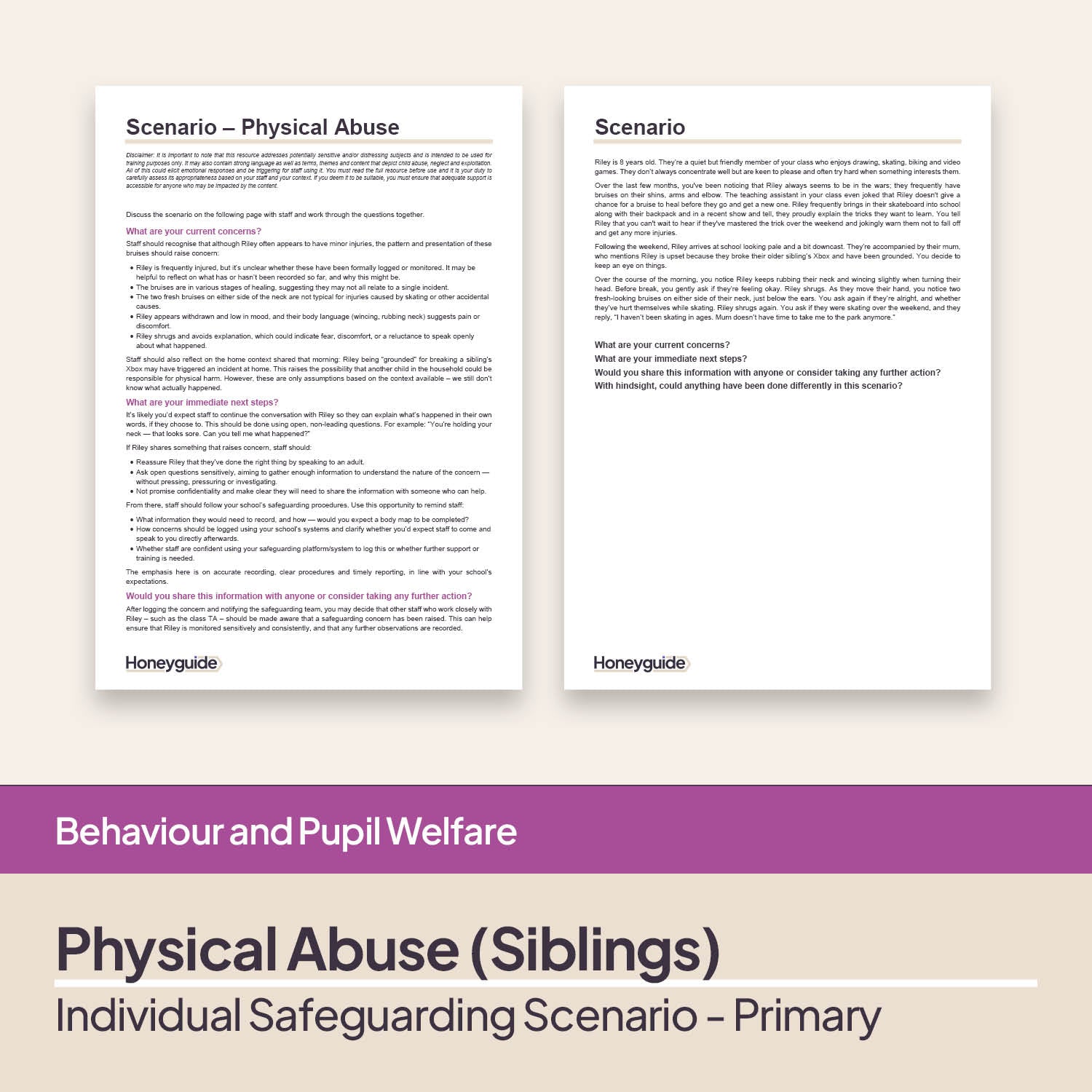 This set explores different aspects of physical abuse, including unexplained injuries and abuse between siblings. Each scenario can be used flexibly in staff meetings or training to prompt professional discussion and reinforce safeguarding procedures.