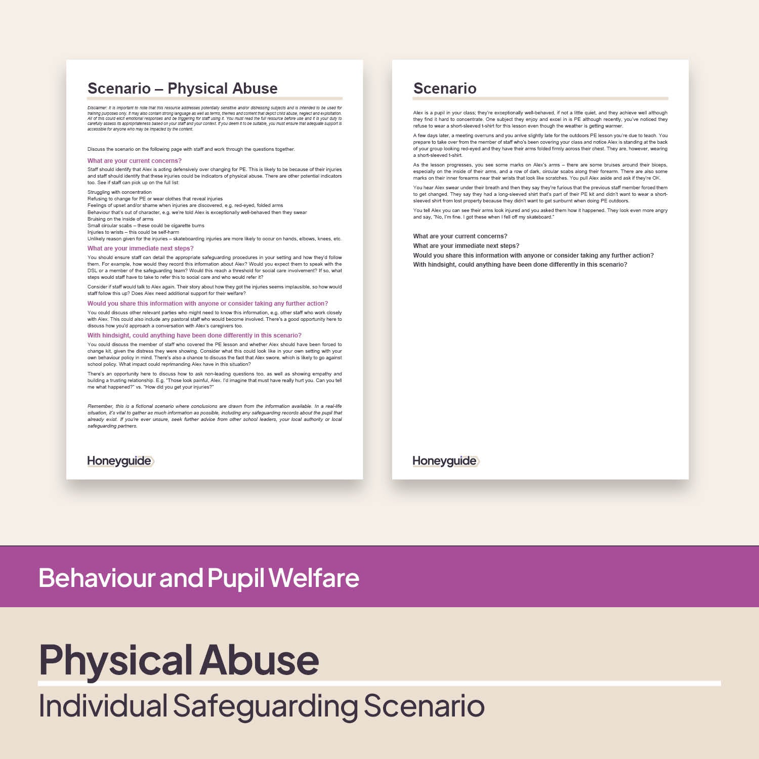 Train staff to recognise and respond to different signs of physical abuse with these editable safeguarding scenarios. Designed for designated safeguarding leads (DSLs), deputy DSLs and anyone leading safeguarding CPD, they cover a range of situations to build staff confidence and strengthen safeguarding culture.