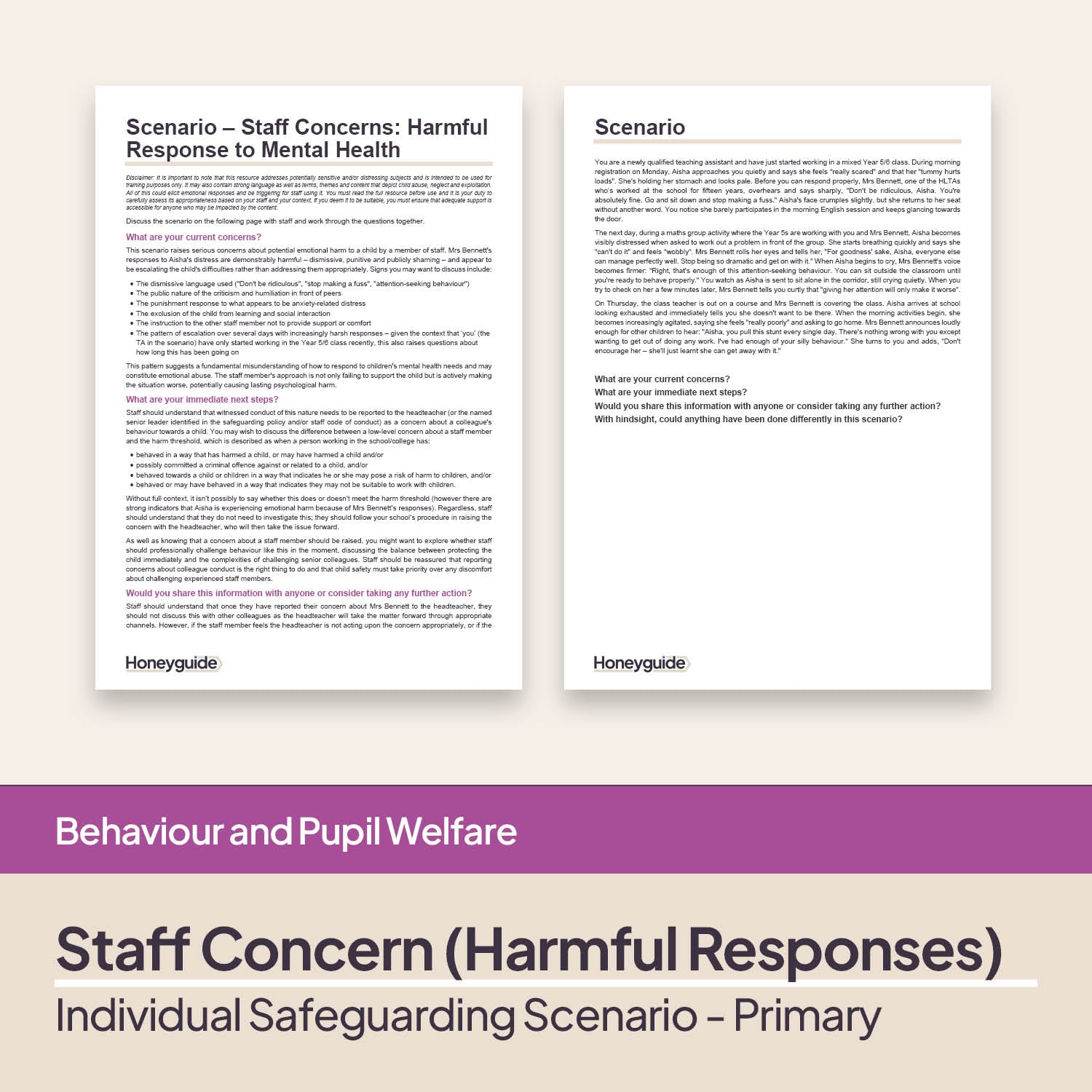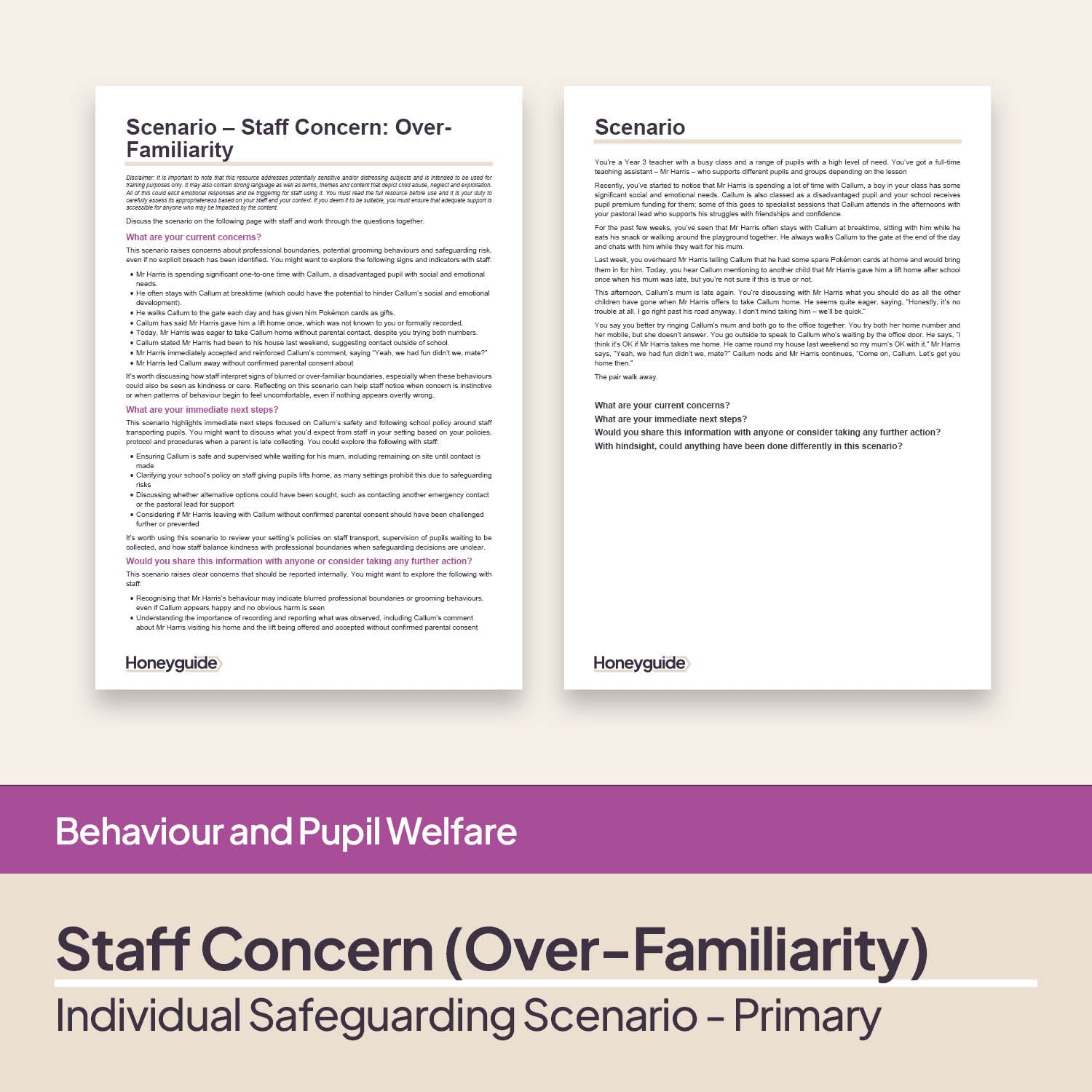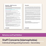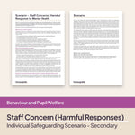 This set explores a wide range of concerns about staff, including inappropriate online conduct, failure to act on safeguarding duties, dismissing child-on-child abuse, intimate care issues, over-familiarity, harmful responses to mental health, and discriminatory attitudes such as Islamophobia. Each scenario can be used flexibly in staff meetings or training to support confident, responsible action in line with safeguarding policies.