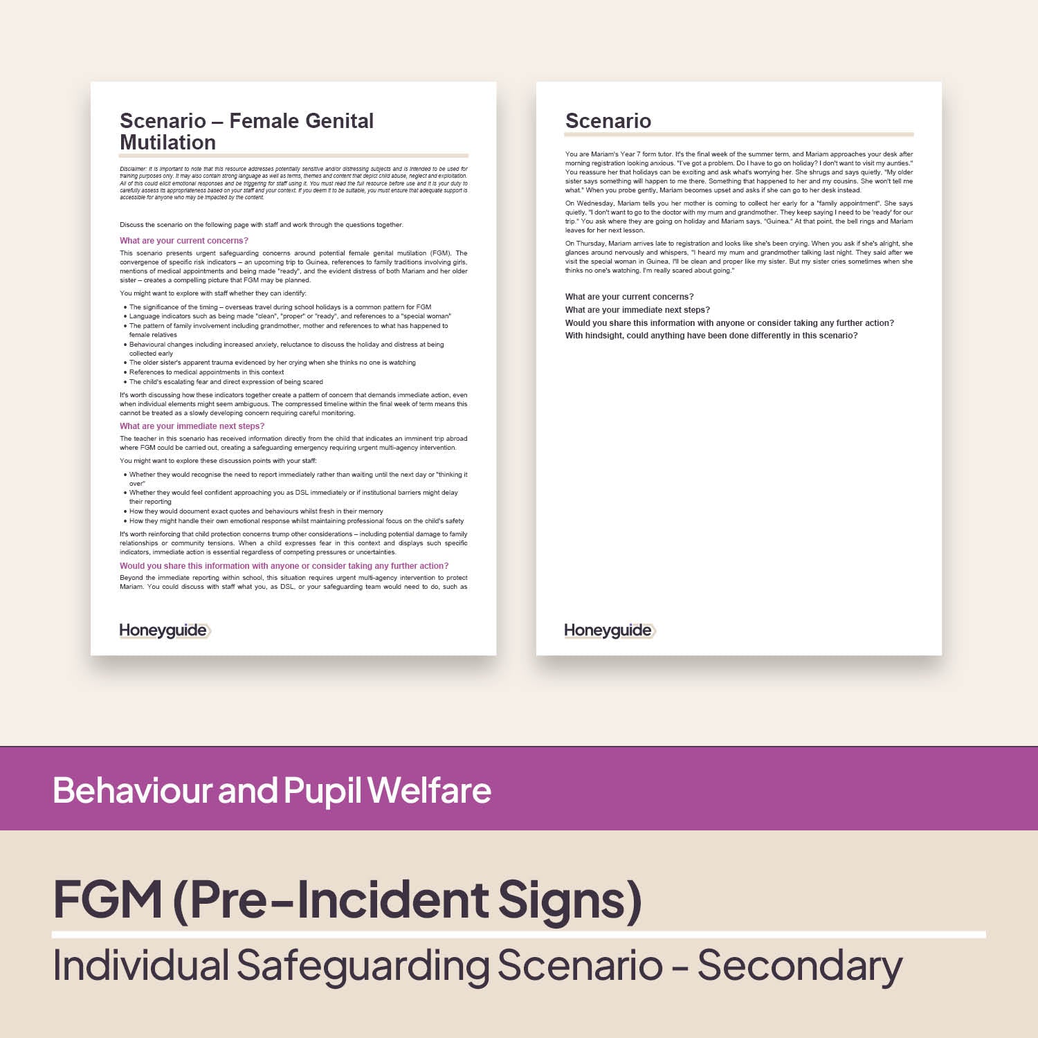 Train staff to recognise and respond to harmful practices with these editable safeguarding scenarios. Designed for designated safeguarding leads (DSLs), deputy DSLs and anyone leading safeguarding CPD, they support confident, culturally sensitive responses to complex safeguarding concerns.