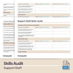 Included is a 16-page template covering the different areas of skills that a member of support staff may need - this is further broken down into sections that are specific to the following roles: