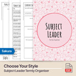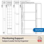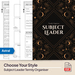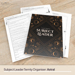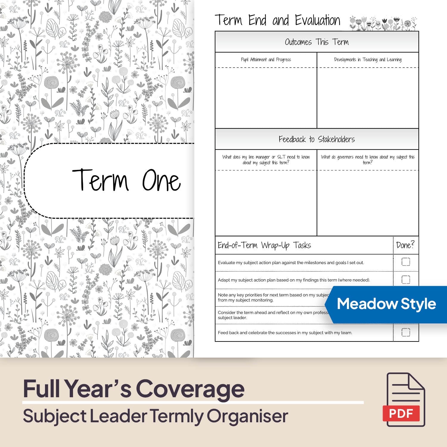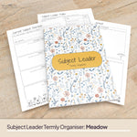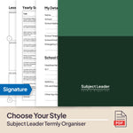 The subject leader planner is then broken down into three terms with divider pages. Each term contains: