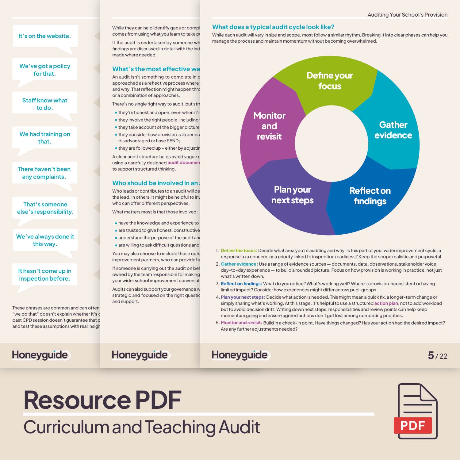 ☑️ Complete audit toolkit includes action plan template, curriculum and teaching evidence checklist, staff, pupil, parent/carer and governor question bank, a one-page SLT/governor summary and step-by-step guidance on conducting an effective audit