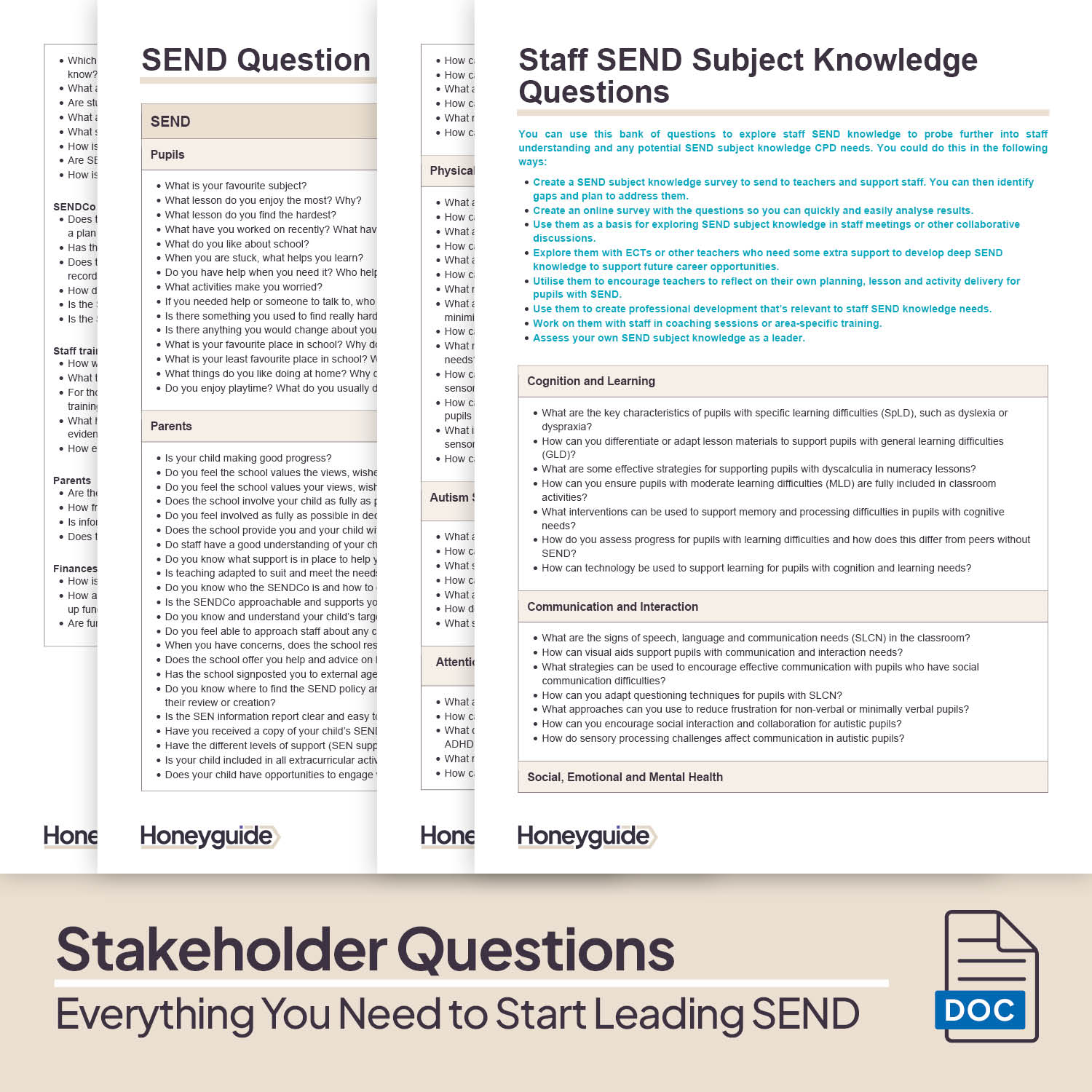 - What questions should I ask staff, parents and pupils? - Ready-made SEND question banks can guide your first conversations with all stakeholders