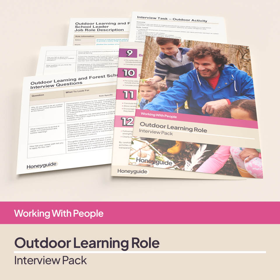 Looking to recruit a new outdoor learning leader or Forest School lead for your school? If you’re wondering what outdoor learning tasks to set at interview or what interview questions you can ask to recruit the right candidate for your school, this Outdoor Learning Role Interview Pack can support you throughout the entire process, from advertising to employment.