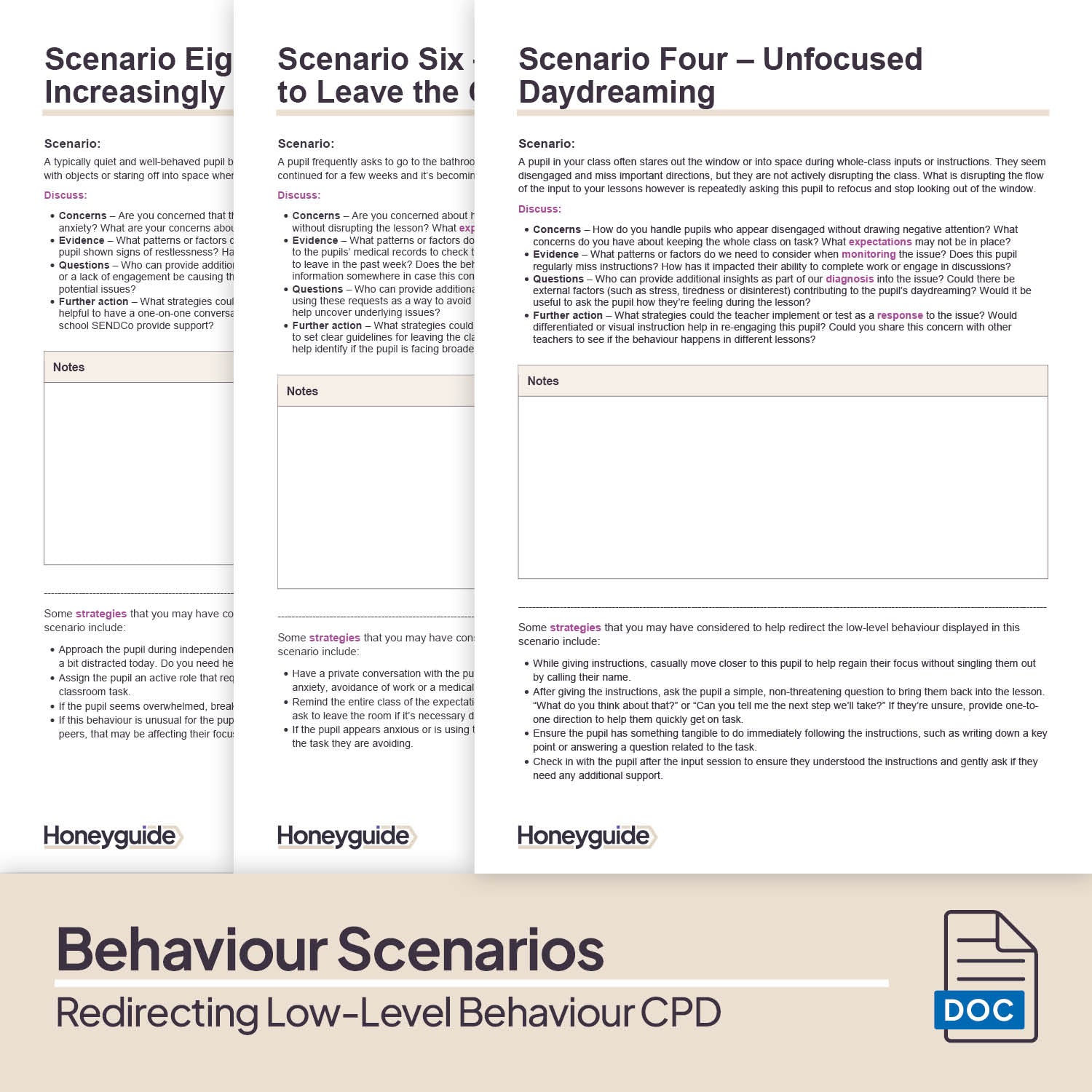- Eight behaviour management scenarios with different examples of common classroom examples where redirection of unwanted behaviour would be an appropriate behaviour management strategy