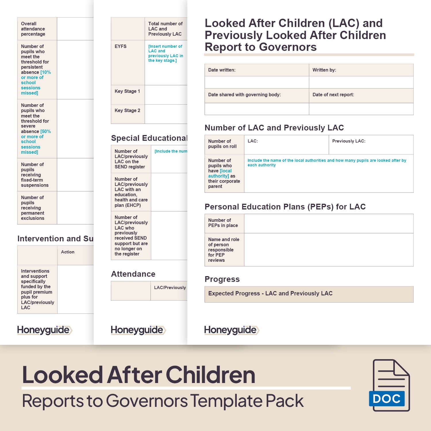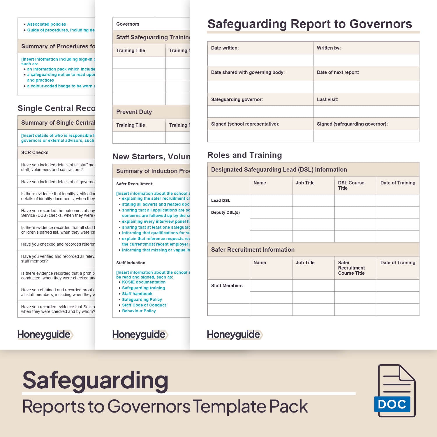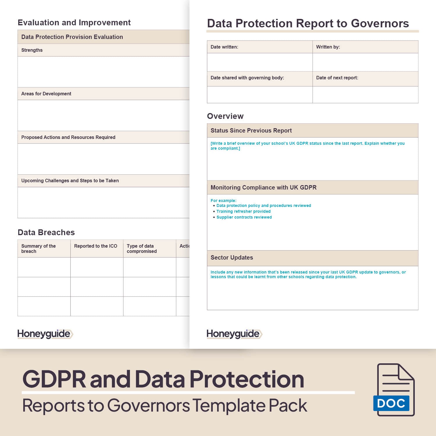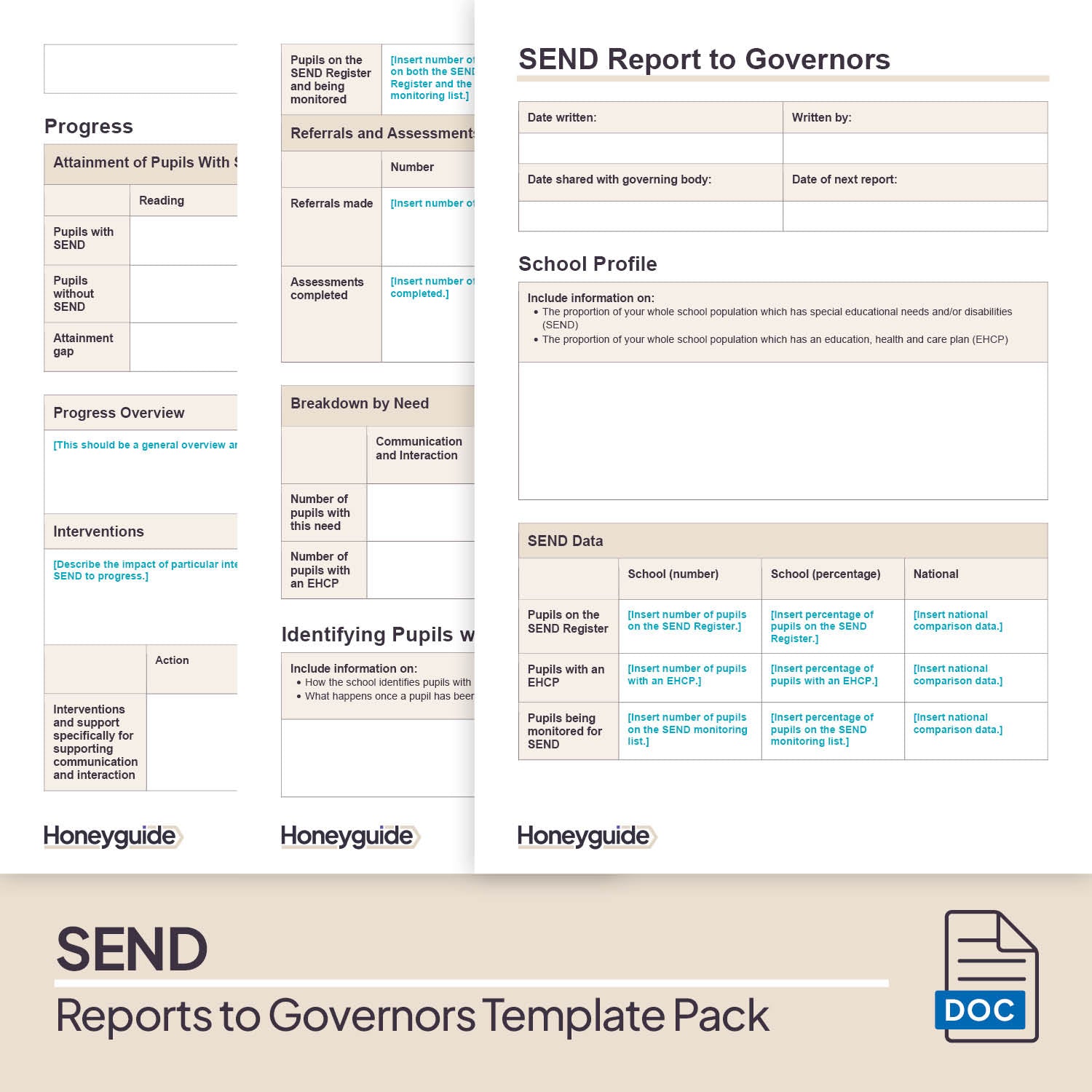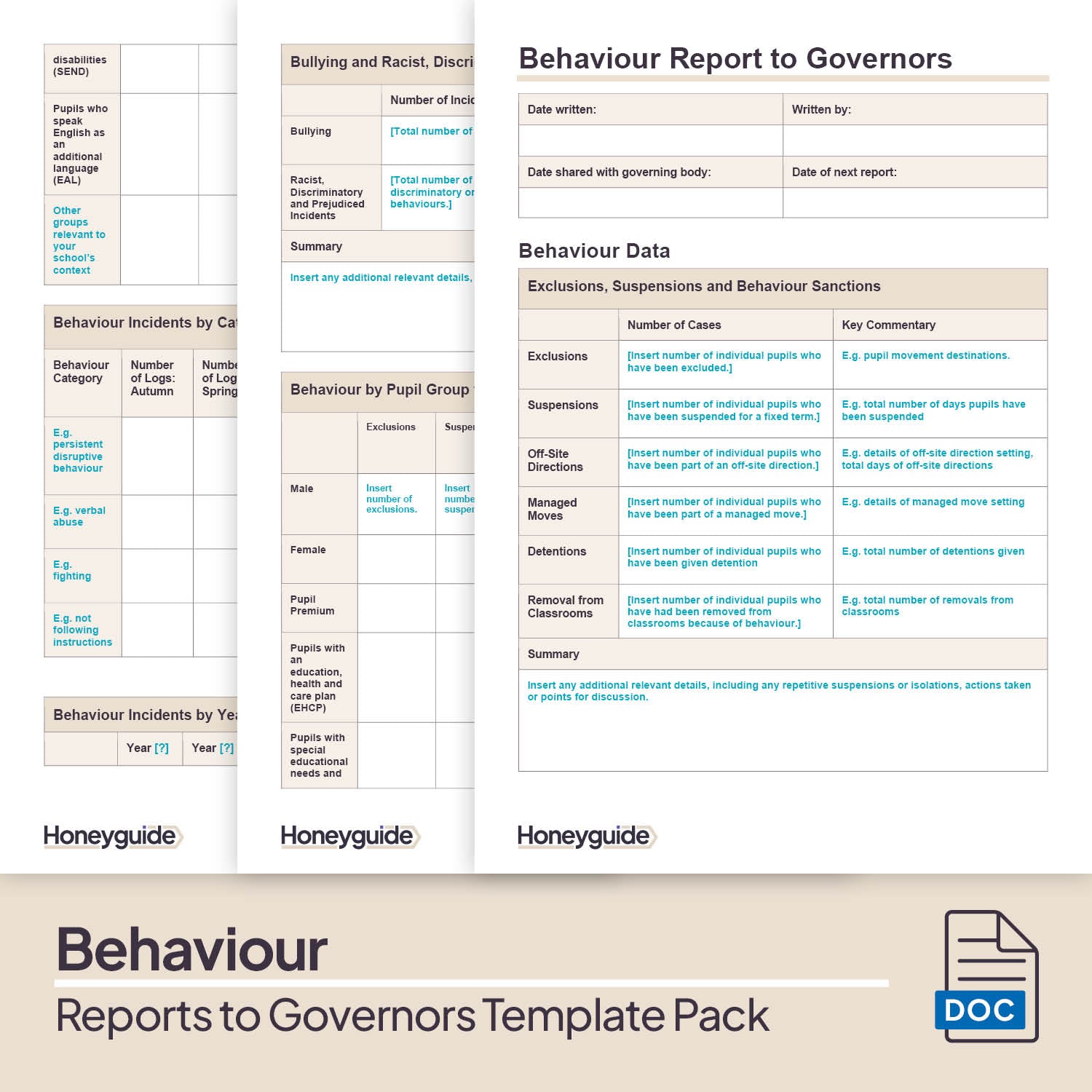 This pack is designed to support effective governance in schools. It contains thirteen editable reporting to governor templates (MS Word .docx format); each one will support school leaders to accurately and consistently report their setting's current position to the full governing board or the relevant governing committee. This enables link governors, local board members and trustees to gain a deeper understanding about the school's current position as well as identifying upwards and downward trends in data, which can then be explored in more depth by the relevant link governors so that effective strategic decisions can be made.