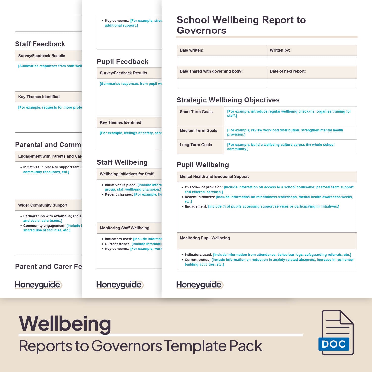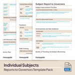 This bundle is perfect for headteachers, trust leaders, governance professionals and SLT members who wish to be consistent in the way they report information to their governing board. The thirteen editable reporting templates will help your governing board to gain a clearer picture in each of the areas, which include school finance, safeguarding, subject reports, wellbeing, pupil premium and more. Each template contains space for data and commentary, allowing governors to build a picture of the school's current position and the reasons behind this.
