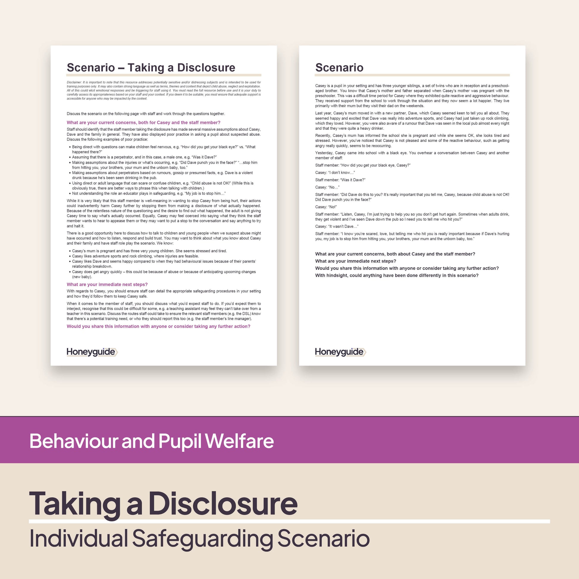 Train staff to respond appropriately to disclosures and understand their safeguarding responsibilities with these editable scenarios. Designed for designated safeguarding leads (DSLs), deputy DSLs and anyone leading safeguarding CPD, they help staff feel prepared and supported in responding to concerns.