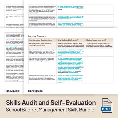 School Budget Management Skills Audit and Self-Evaluation - This 16-page editable Word document contains a wealth of reflective questions that you can work through to determine your current depth of understanding in all areas of school budget management. From knowing key vocabulary and financial terminology to budget cycles, forecasts and how to plan your school budget, the resource explains why having an understanding of each area is important, allowing you to plan for your own budget training and development needs. It's is aimed at new headteachers, principals and heads of school but can equally be used by existing heads, school business managers or finance officers as a financial skills self-evaluation tool.