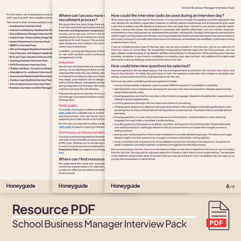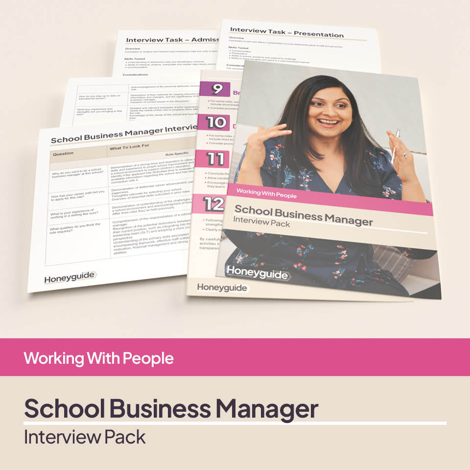 Headteachers, trust leaders, senior leaders, members of the governing body and trustees who lead recruitment processes will find this time-saving pack useful. This pack is also helpful for those  aspiring to undertake a school business manager role or those working in finance management who are looking to move from a different industry into education. If this describes you, this pack can support your understanding of the interview process.