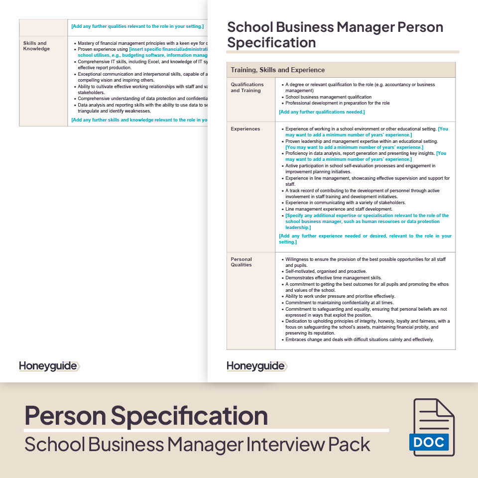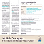 Included in this school business manager interview pack are four different editable interview tasks plus a wide variety of example interview questions so you can find a brilliant school finance operations lead and business manager for your school or academy trust. The job description and person specification will also support you in advertising for a new SBM so you can attract the right candidates. Use these, alongside the interview tasks and school business manager interview questions to create a recruitment package that's tailored to exactly what your school is looking for in a new finance, business and operations lead.