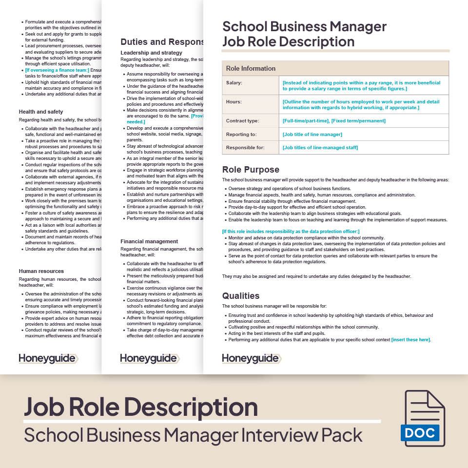 While the pack is tailored towards appointing a new school business manager, it can be used to support the recruitment process for any financial or central, business-based school or MAT roles, including school finance manager, finance assistant, finance operations manager, bursar, finance officer, finance director, CFO, finance director or school business lead.