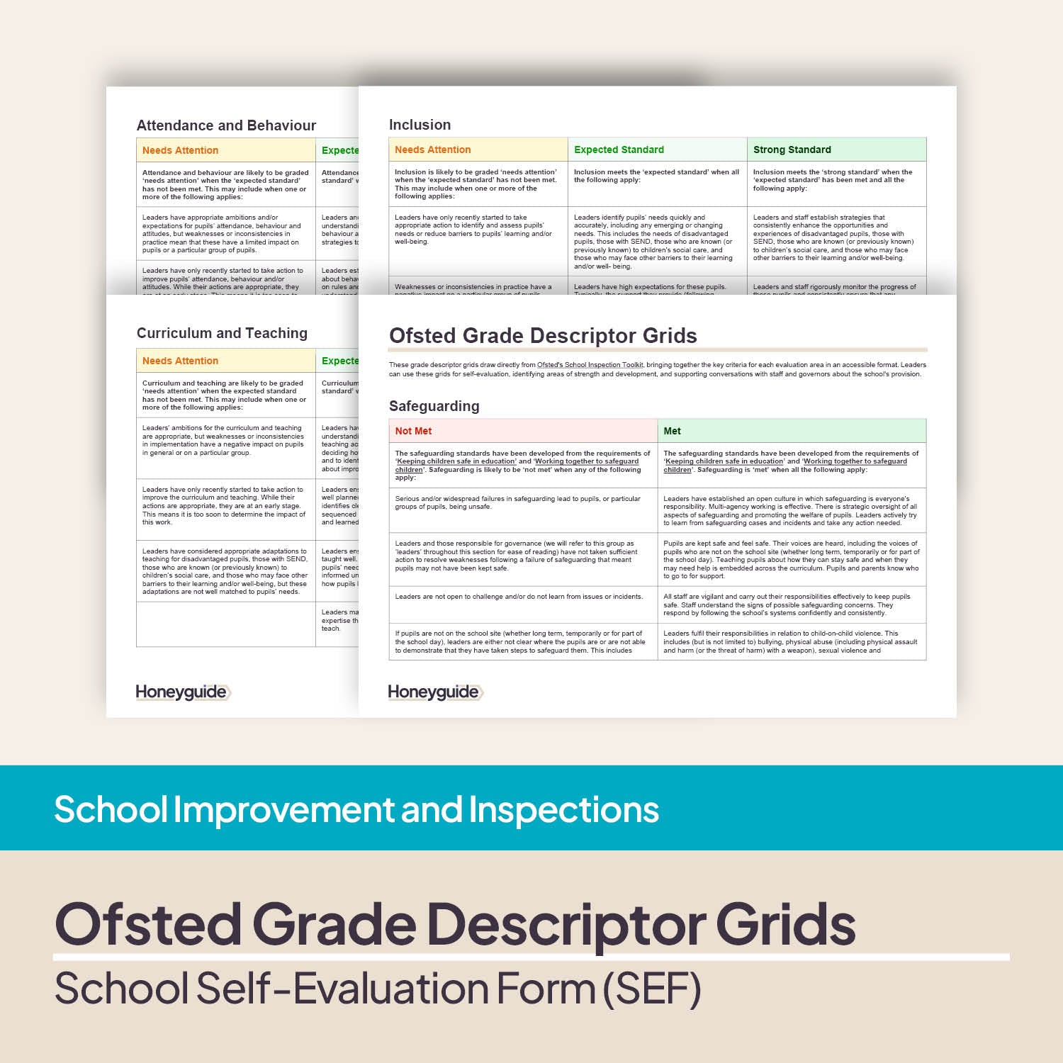 ☑️ Ofsted Grade Descriptor Grids Current grade descriptors aligned to the latest inspection toolkit, helping you accurately assess performance against the standards inspectors actually use.